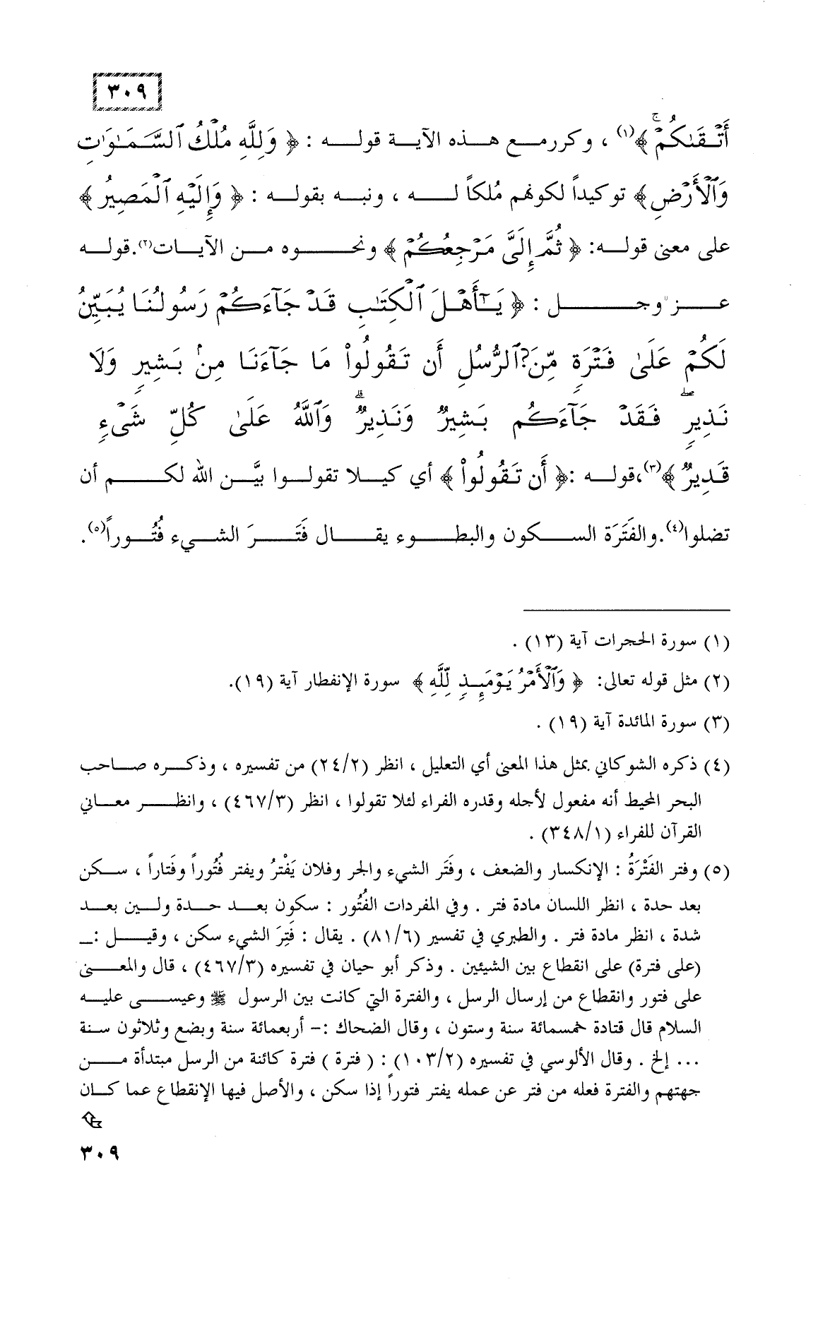 قوله عز وجل: (يَا أَهْلَ الْكِتَابِ قَدْ جَاءَكُمْ رَسُولُنَا يُبَيِّنُ لَكُمْ عَلَى فَتْرَةٍ مِنَ الرُّسُلِ أَنْ تَقُولُوا مَا جَاءَنَا مِنْ بَشِيرٍ وَلَا نَذِيرٍ فَقَدْ جَاءَكُمْ بَشِيرٌ وَنَذِيرٌ وَاللَّهُ عَلَى كُلِّ شَيْءٍ قَدِيرٌ (19)