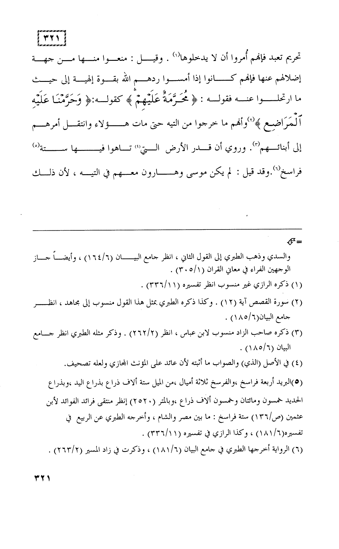 وروي أن قدر الأرض التي تاهوا فيها ستة فراسخ.