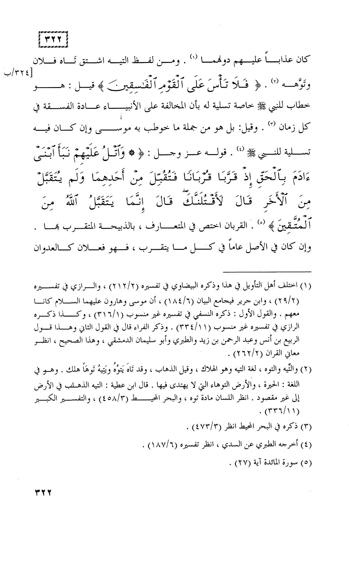 قوله عز وجل: (وَاتْلُ عَلَيْهِمْ نَبَأَ ابْنَيْ آدَمَ بِالْحَقِّ إِذْ قَرَّبَا قُرْبَانًا فَتُقُبِّلَ مِنْ أَحَدِهِمَا وَلَمْ يُتَقَبَّلْ مِنَ الْآخَرِ قَالَ لَأَقْتُلَنَّكَ قَالَ إِنَّمَا يَتَقَبَّلُ اللَّهُ مِنَ الْمُتَّقِينَ (27)