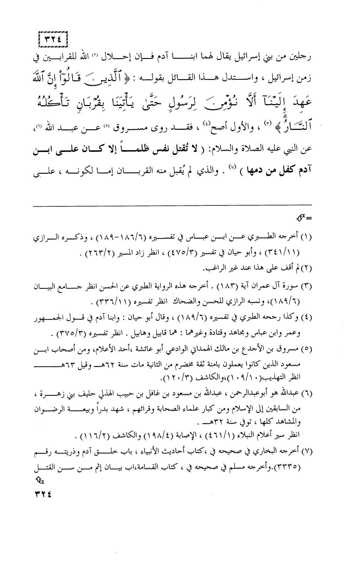 زمن إسرائيل، واستدل هذا القائل بقوله: (الَّذِينَ قَالُوا إِنَّ اللَّهَ عَهِدَ إِلَيْنَا أَلَّا نُؤْمِنَ لِرَسُولٍ حَتَّى يَأْتِيَنَا بِقُرْبَانٍ تَأْكُلُهُ النَّارُ)، والأول أصح، فقد روى مسروق عن عبد الله، عن النبي عليه الصلاة والسلام: (لا تُقتل نفس ظلماً إلا كان على ابن آدم كفل من دمها).