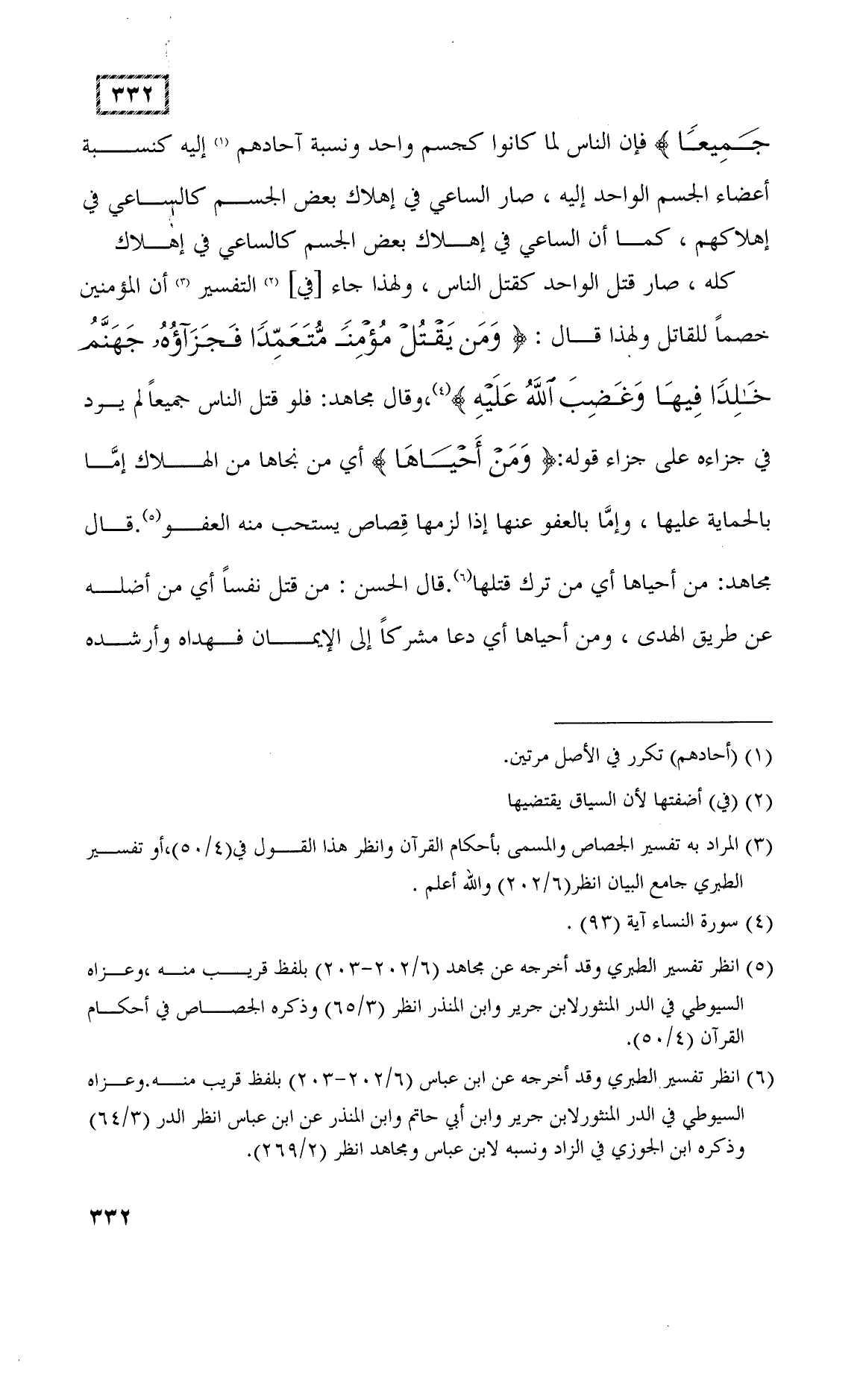 كله، صار قتل الواحد كقتل الناس، ولهذا جاء في التفسير أن المؤمنين