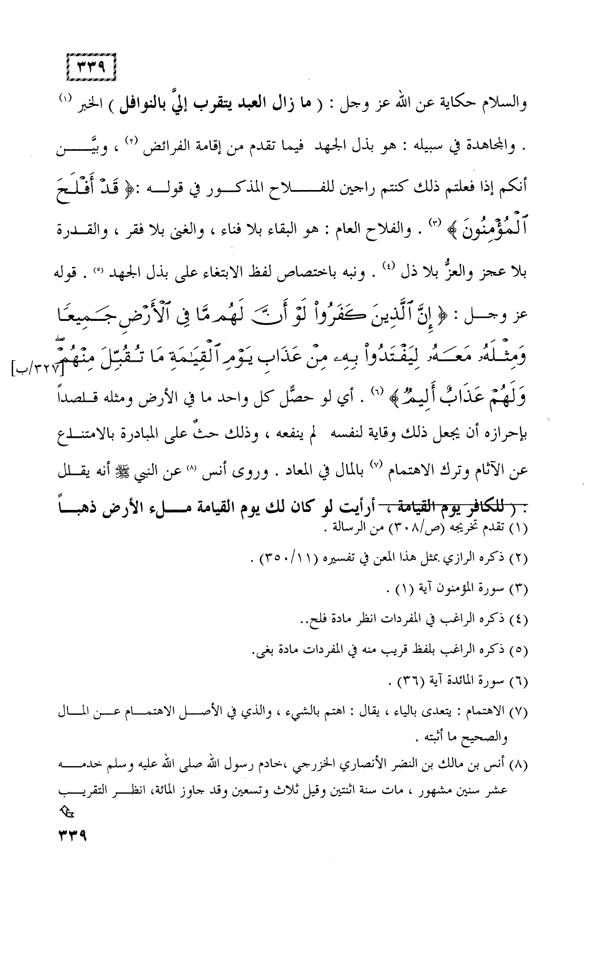 بإحرازه أن يجعل ذلك وقاية لنفسه لم ينفعه، وذلك حثٌّ على المبادرة بالامتناع عن الآثام وترك الاهتمام بالمال في المعاد.