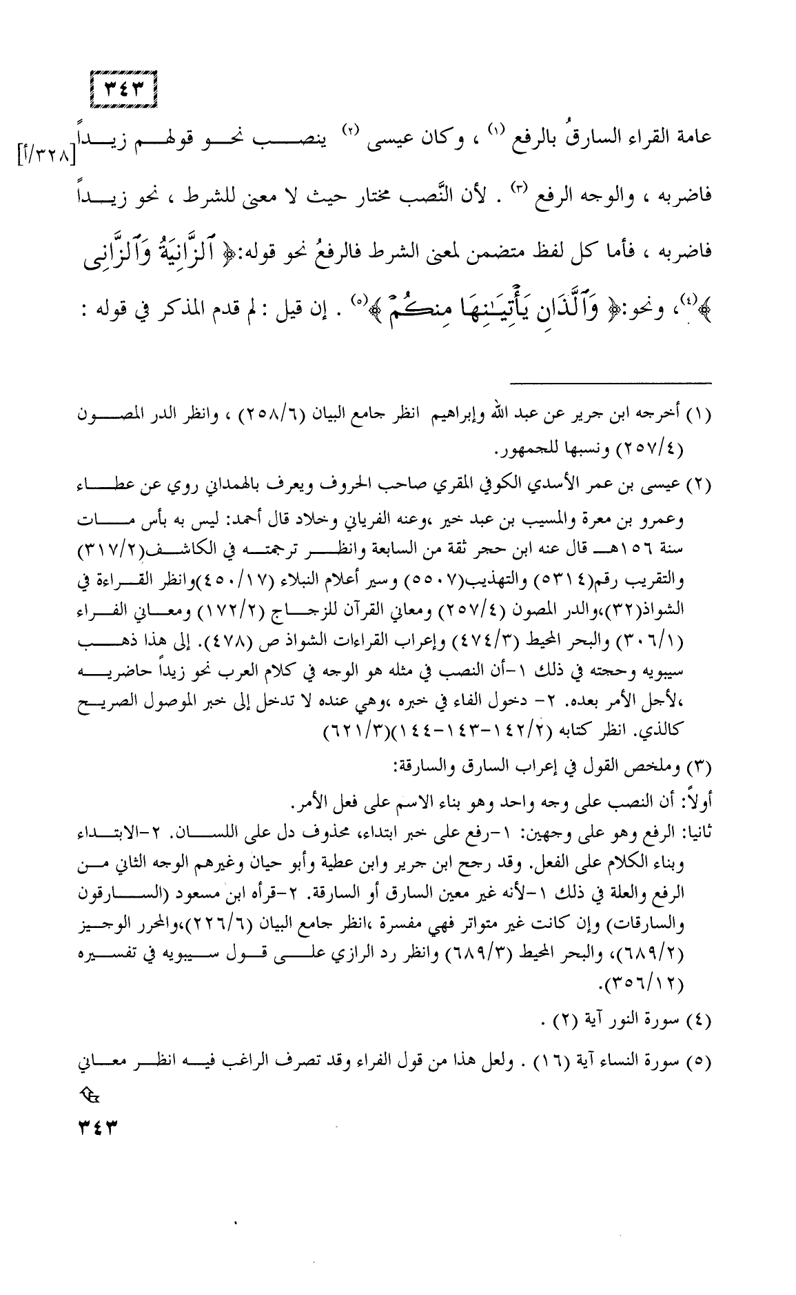 وقراءة عامة القراء (السارقُ) بالرفع، وكان عيسى ينصب نحو قولهم زيداً