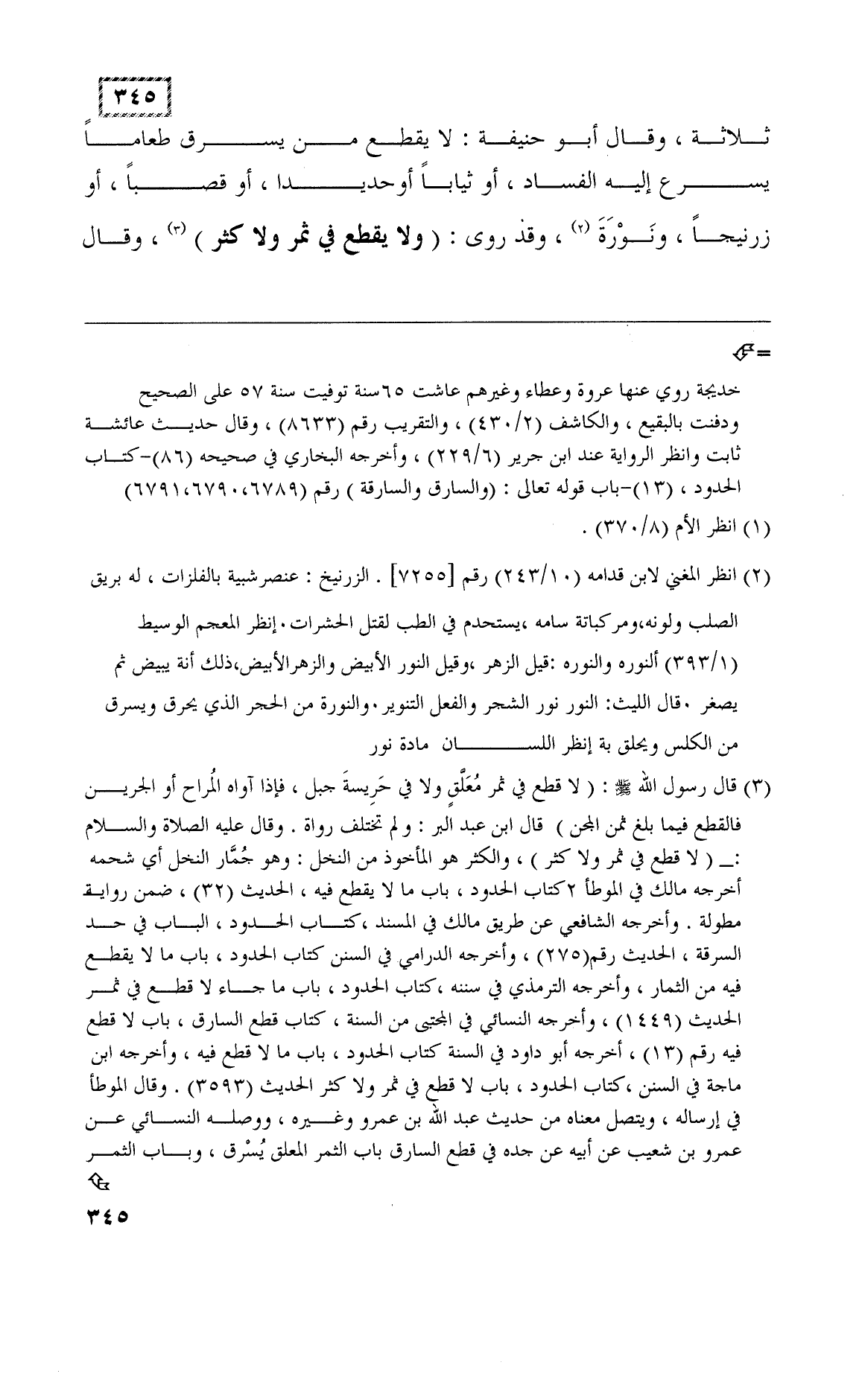 زرنيجاً، ونَوْرَةَ، وقد روى: (ولا يقطع في ثمر ولا كثر)،