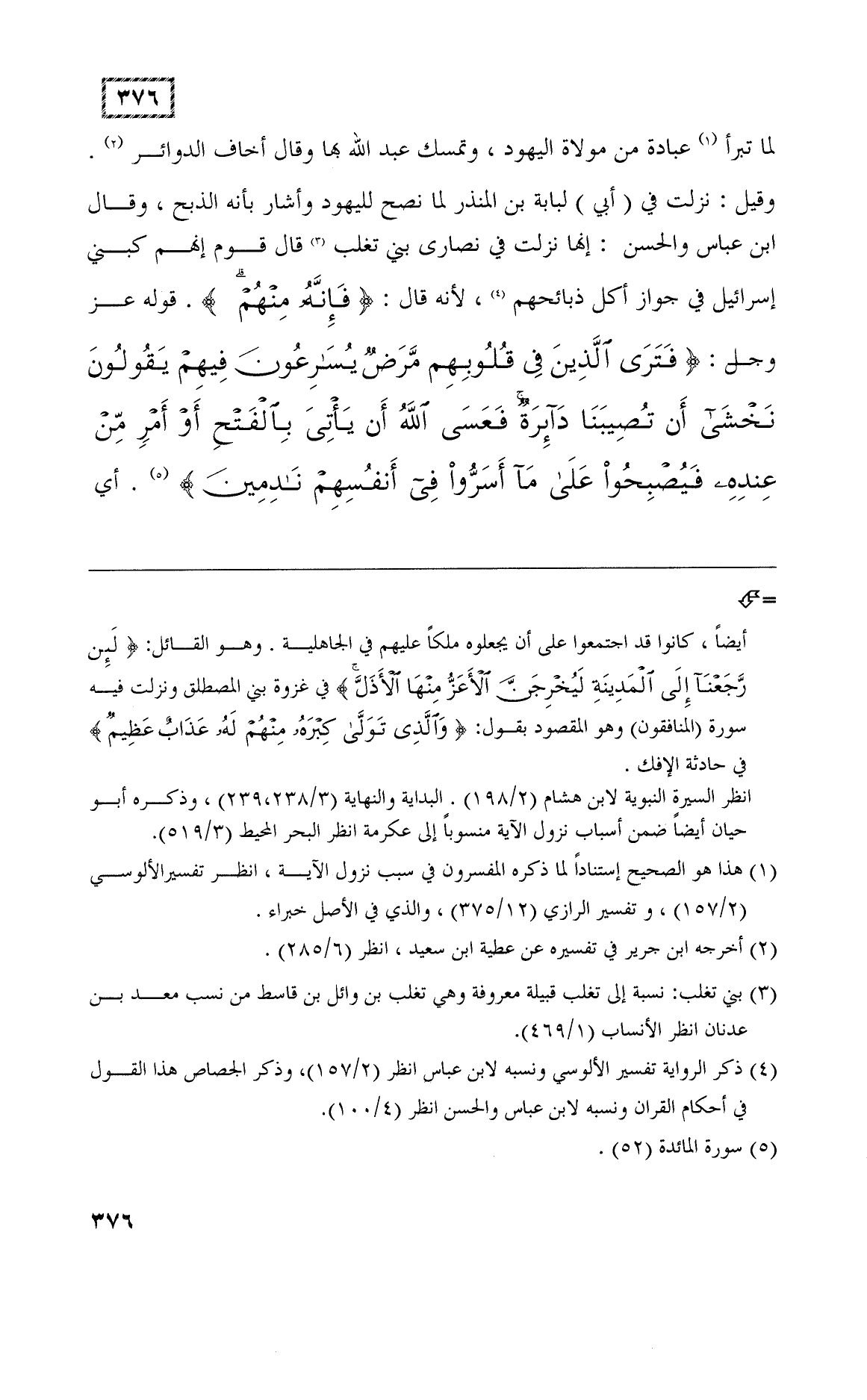 لما تبرأ عبادة من مولاة اليهود، وتمسك عبد الله بها وقال أخاف الدوائر.