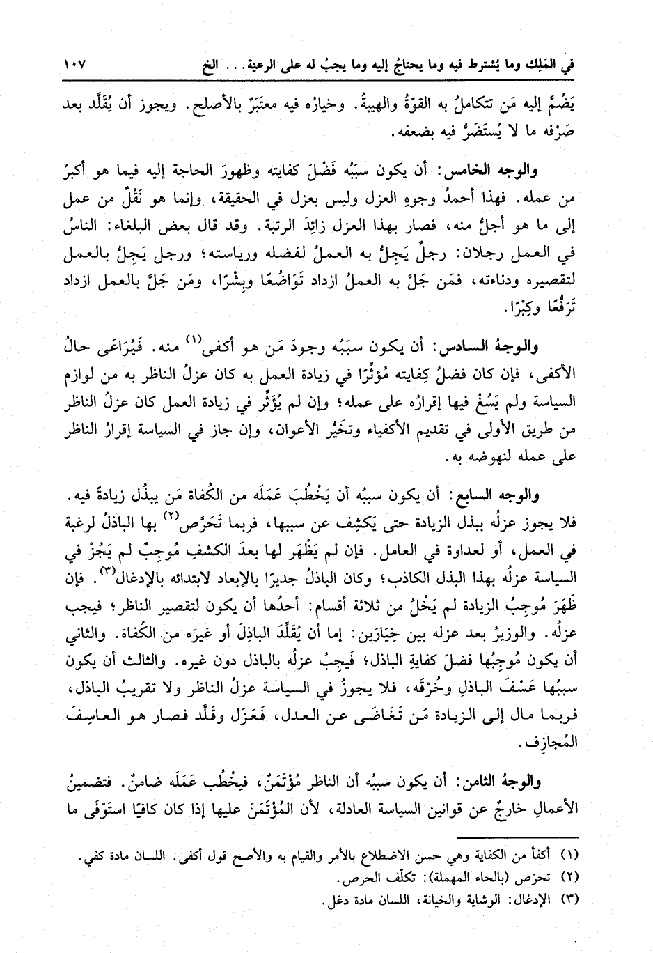 فهذا أحمد وجوه العزل وليس بعزل في الحقيقة ، وإنما هو نقلٌ من عمل إلى ما هو أجلّ منه ، فصار بهذا العزل زائد الرتبة .