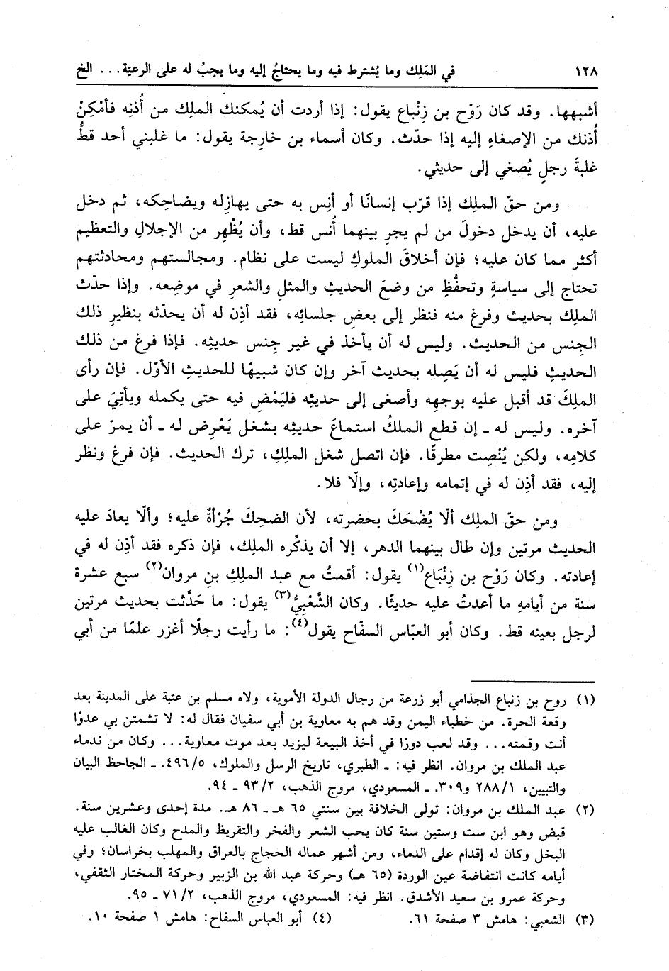 وقد كان روح بن زنباع يقول : إذا أردت أن يمكنك الملك من أذنه فأمكن أذنك من الإصغاء إليه إذا حدث .