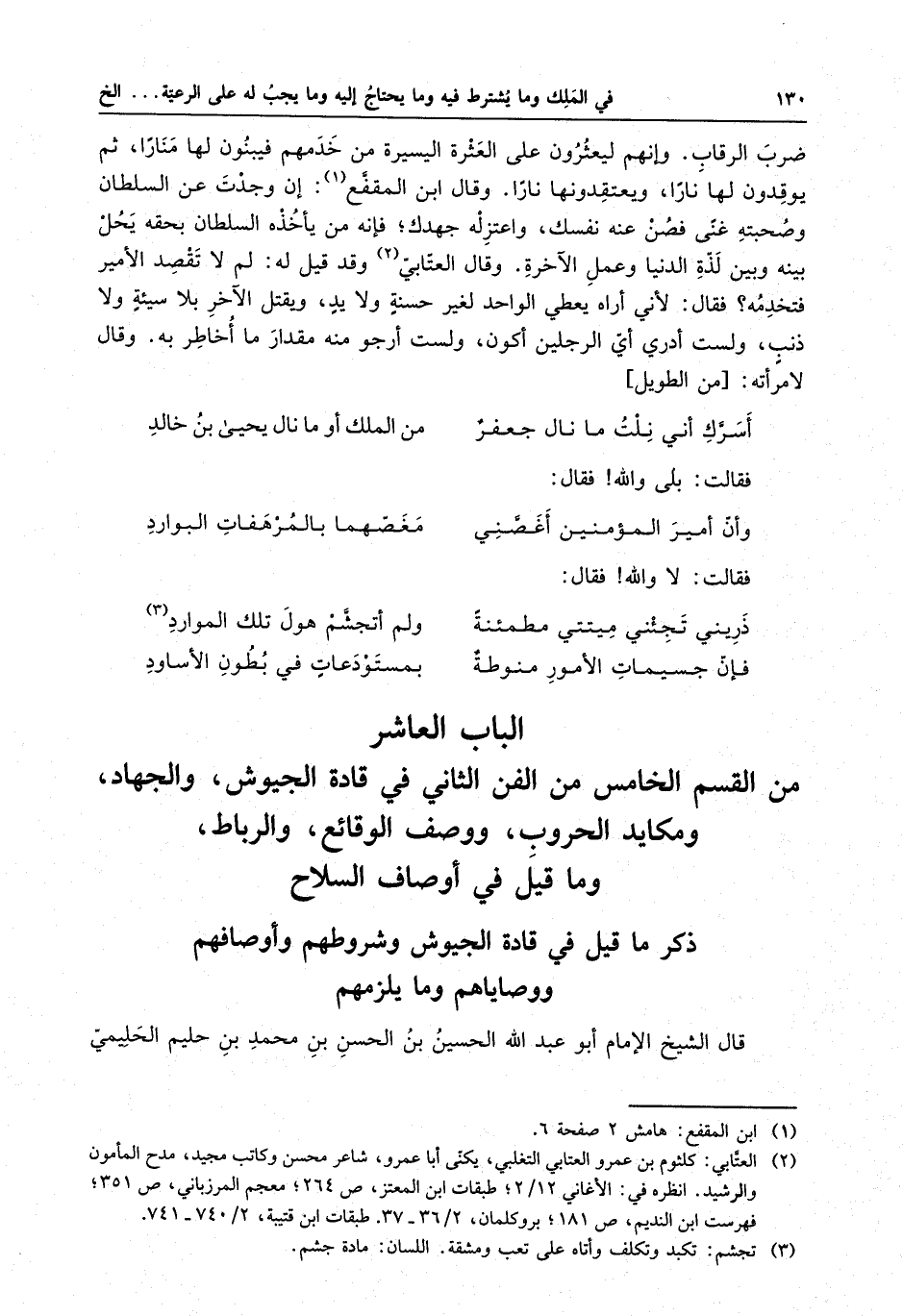قادة الجيوش ، والجهاد . . ، ومكايد الحرب ، ووصف الوقائع ، والرباط ، وما قيل في أوصاف السلاح