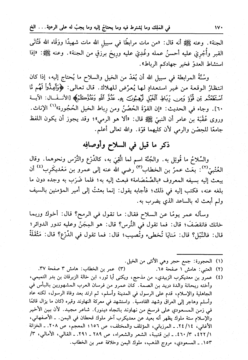 ذكر ما قيل في السلاح وأوصافه