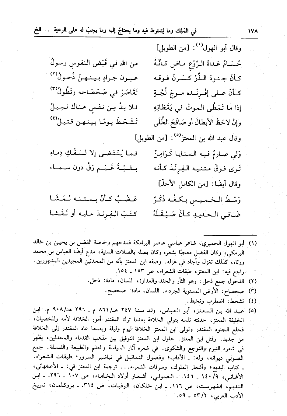 ولي صارمٌ فيه المنايا كوامنٌ . . . فما ينتضى إلا لسفك الدماء ترى فوق متنيه الفرند كأنه . . . بقية غيم رق دون سماء