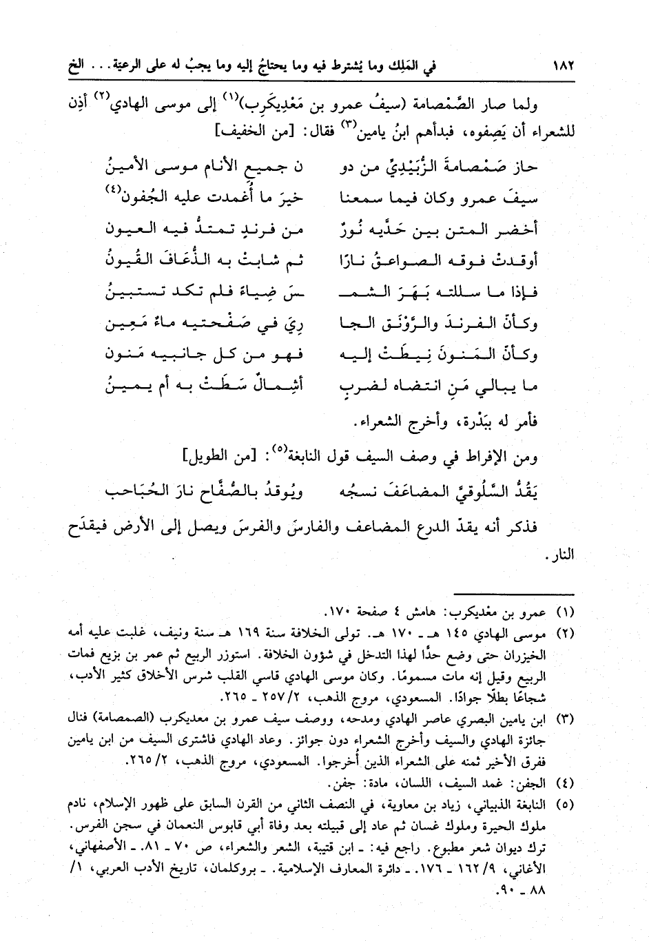 حاز صمصامة الزبيدي من دو . . . ن جميع الأنام موسى الأمين سيف عمرو وكان فيما سمعنا . . . خير ما أغمدت عليه الجفون