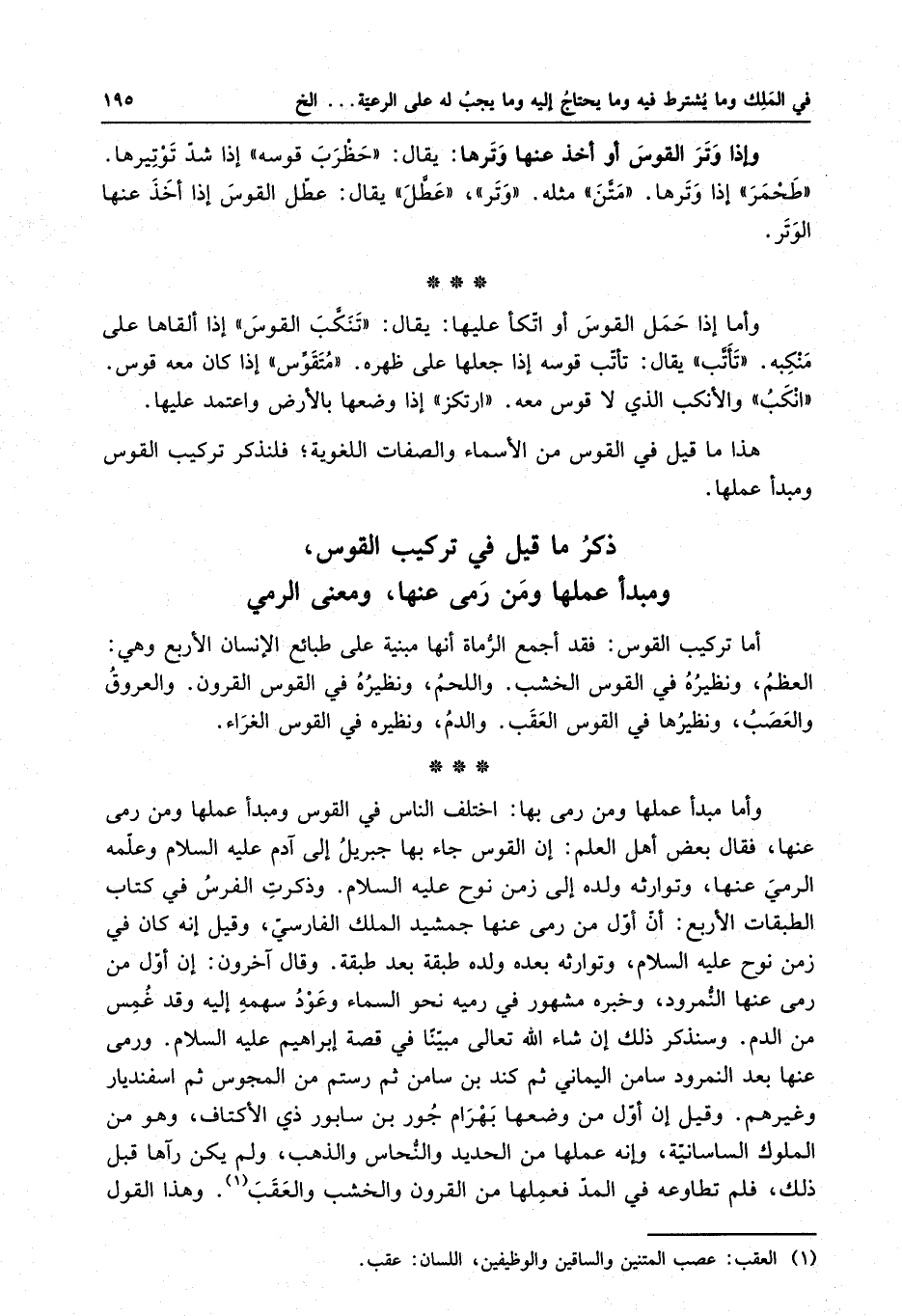 هذا ما قيل في القوس من الأسماء والصفات اللغوية ؛ فلنذكر تركيب القوس ومبدأ عملها .