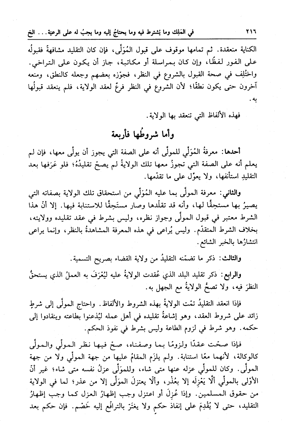 فإذا انعقد التقليد تمت الولاية بهذه الشروط والألفاظ .