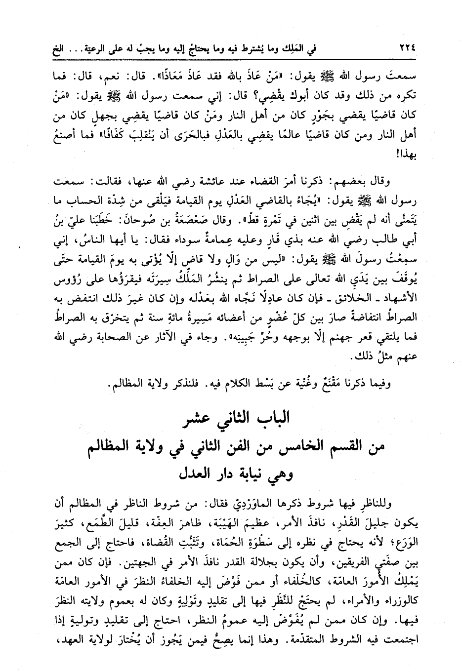 الباب الثاني عشر من القسم الخامس من الفن الثاني في ولاية المظالم وهي نيابة دار العدل