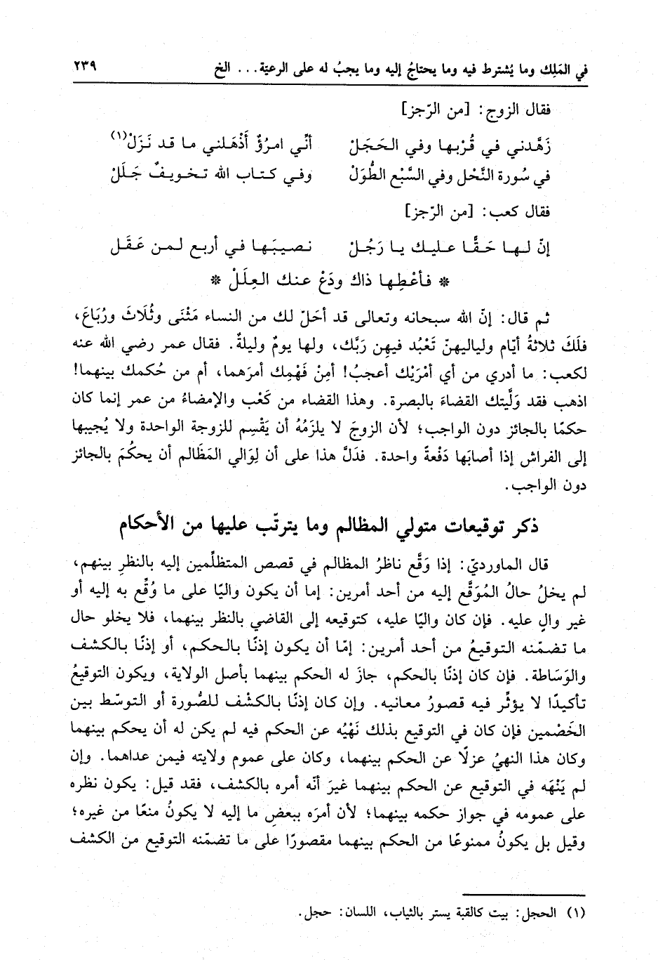إن لها حقاً عليك يا رجل . . . نصيبها في أربع لمن عقل
