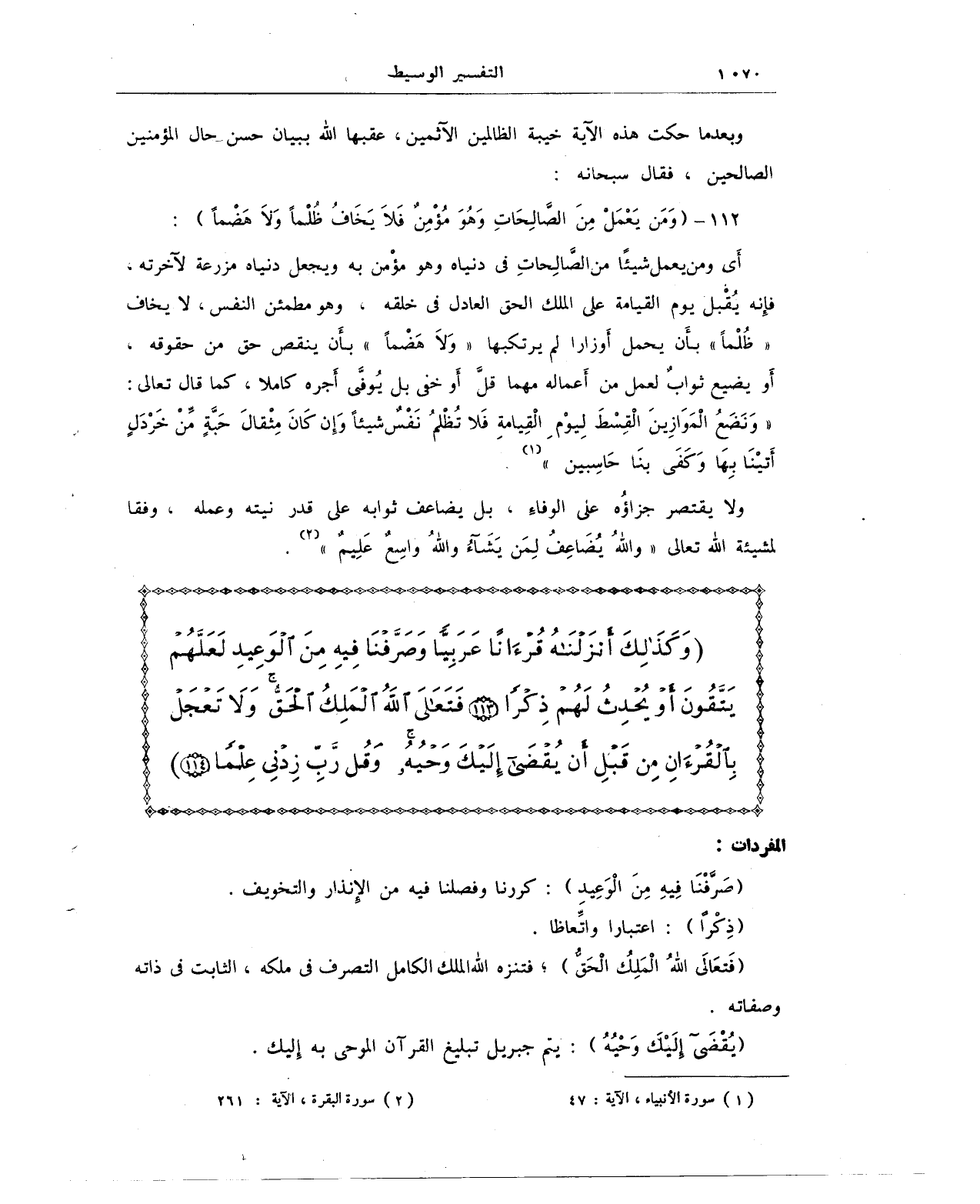 112 - {وَمَنْ يَعْمَلْ مِنَ الصَّالِحَاتِ وَهُوَ مُؤْمِنٌ فَلَا يَخَافُ ظُلْمًا وَلَا هَضْمًا}:
