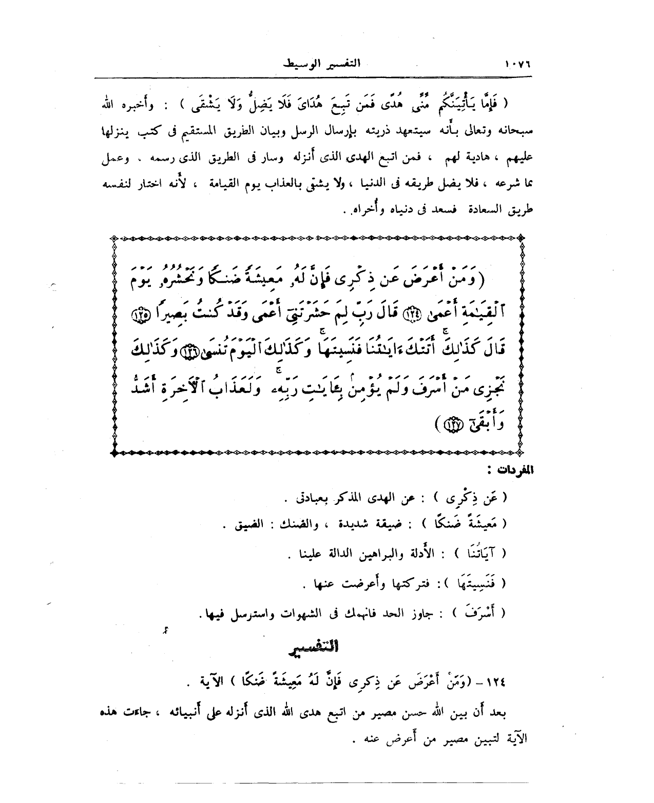 124 - {وَمَنْ أَعْرَضَ عَنْ ذِكْرِي فَإِنَّ لَهُ مَعِيشَةً ضَنْكًا .... } الآية.