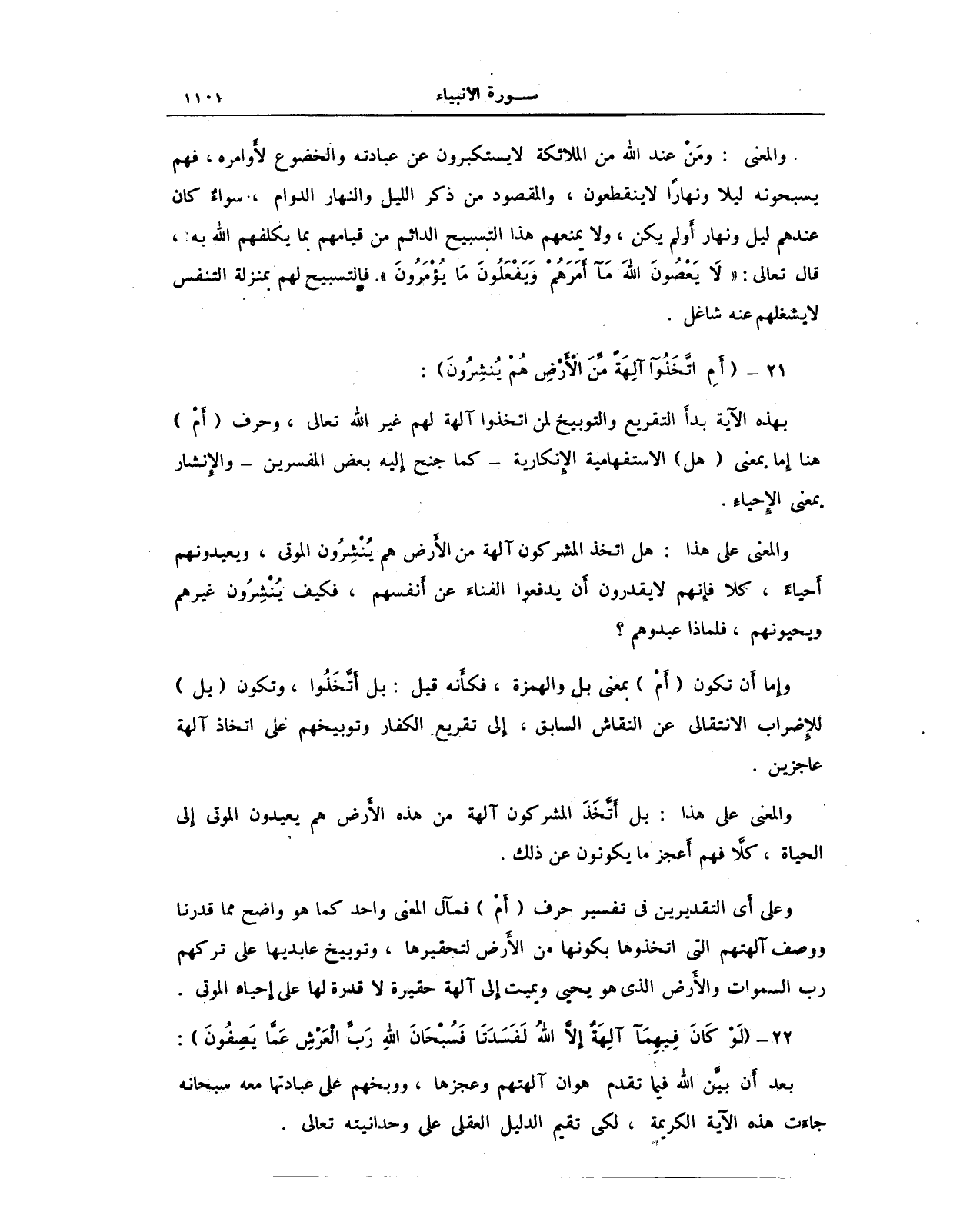 22 - {لَوْ كَانَ فِيهِمَا آلِهَةٌ إِلَّا اللَّهُ لَفَسَدَتَا فَسُبْحَانَ اللَّهِ رَبِّ الْعَرْشِ عَمَّا يَصِفُونَ}: