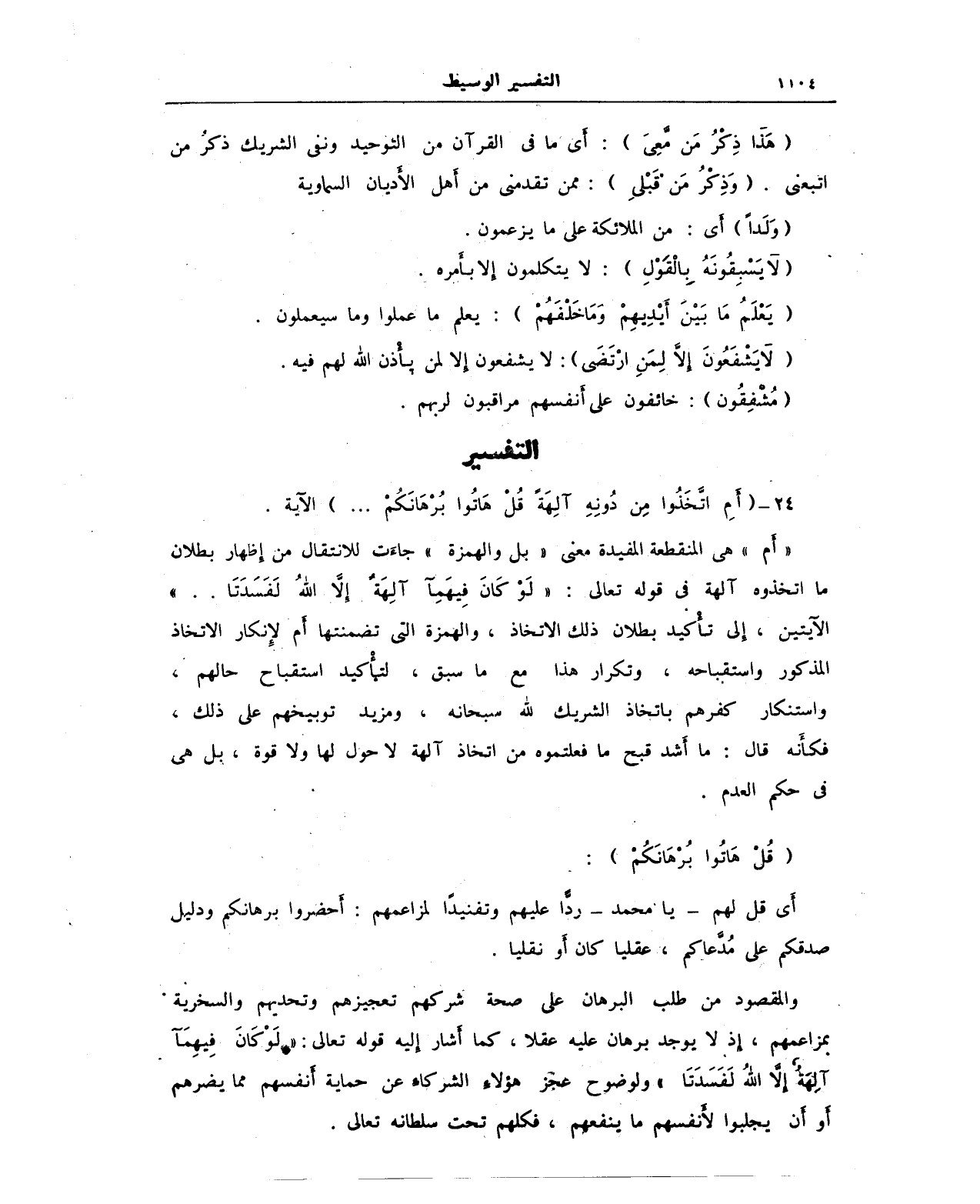 24 - {أَمِ اتَّخَذُوا مِنْ دُونِهِ آلِهَةً قُلْ هَاتُوا بُرْهَانَكُمْ ...... } الآية.