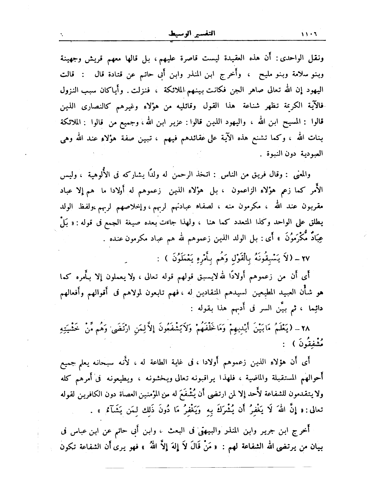 أخرج ابن جرير وابن المنذر والبيهقى في البعث، وابن أَبي حاتم عن ابن عباس في بيان من يرتضى الله الشفاعة لهم: "مَن قَالَ لاَ إلهَ إلاَّ الله" فهو يرى أَن الشفاعة