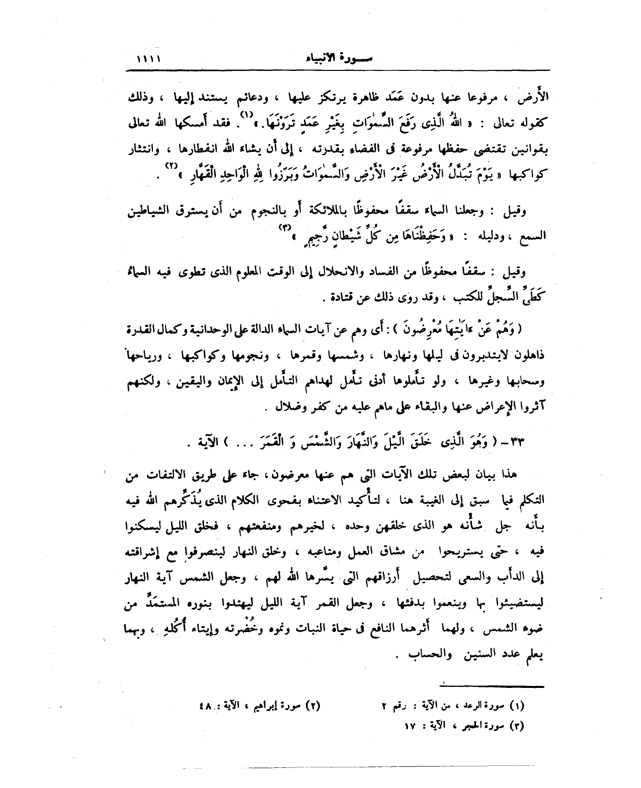 33 - {وَهُوَ الَّذِي خَلَقَ اللَّيْلَ وَالنَّهَارَ وَالشَّمْسَ وَالْقَمَرَ .... } الآية.