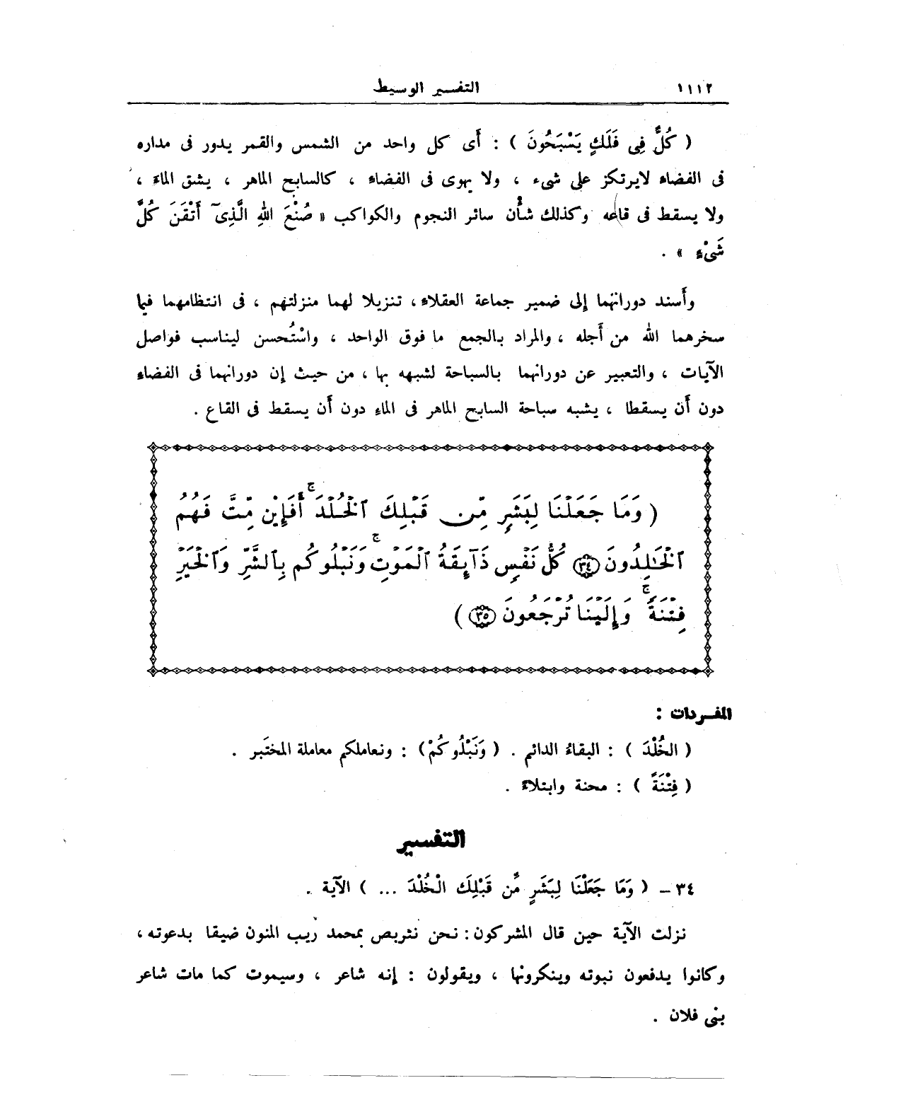 34 - {وَمَا جَعَلْنَا لِبَشَرٍ مِنْ قَبْلِكَ الْخُلْدَ ..... } الآية.