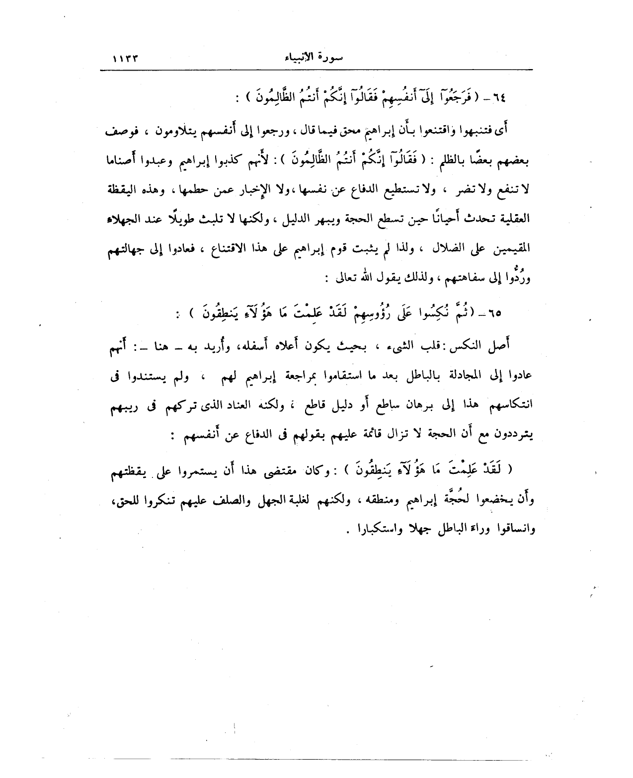 65 - {ثُمَّ نُكِسُوا عَلَى رُءُوسِهِمْ لَقَدْ عَلِمْتَ مَا هَؤُلَاءِ يَنْطِقُونَ}: