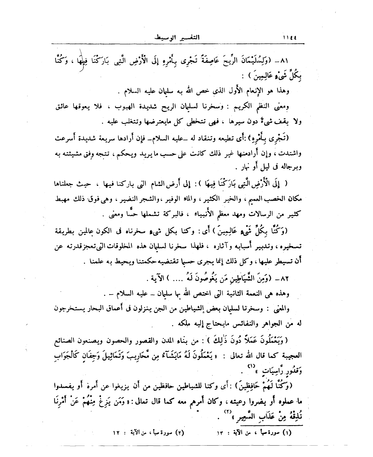 {وَكُنَّا لَهُمْ حَافِظِينَ}: أَي وكنا للشياطين حافظين من أَن يزيغوا عن أَمره أَو يفسدوا ما عملوه أَو يضروا رعيته، وكان أَمرهم معه كما قال تعالى: {وَمَنْ يَزِغْ مِنْهُمْ عَنْ أَمْرِنَا نُذِقْهُ مِنْ عَذَابِ السَّعِيرِ} (¬2).