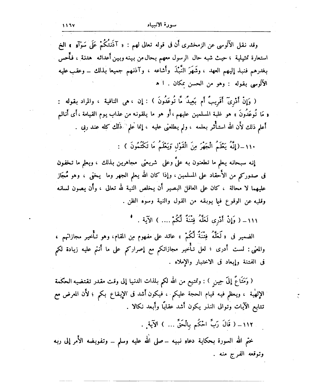 112 - {قَالَ رَبِّ احْكُمْ بِالْحَقِّ ... } الآية.