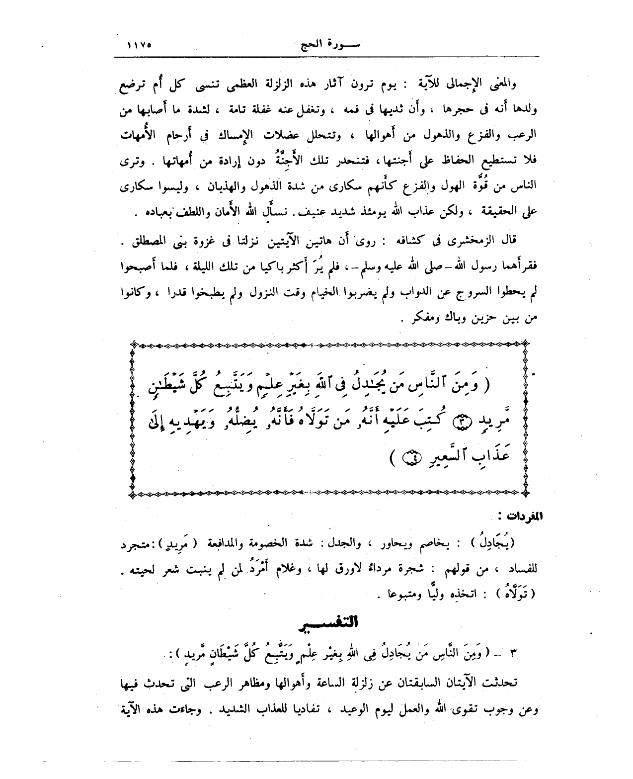{يُجَادِلُ}: يخاصم ويحاور، والجدل: شدة الخصومة والمدافعة (مَرِيدٍ): متجرد للفساد، من قولهم: شجرة مرداءُ لا ورق لها، وغلام أَمْرَدُ لمن لم ينبت شعر لحيته.