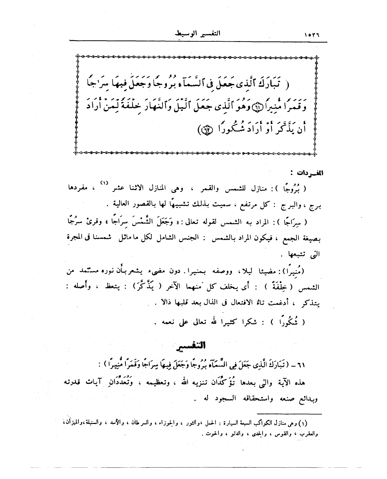 {تَبَارَكَ الَّذِي جَعَلَ فِي السَّمَاءِ بُرُوجًا وَجَعَلَ فِيهَا سِرَاجًا وَقَمَرًا مُنِيرًا (61) وَهُوَ الَّذِي جَعَلَ اللَّيْلَ وَالنَّهَارَ خِلْفَةً لِمَنْ أَرَادَ أَنْ يَذَّكَّرَ أَوْ أَرَادَ شُكُورًا (62)}