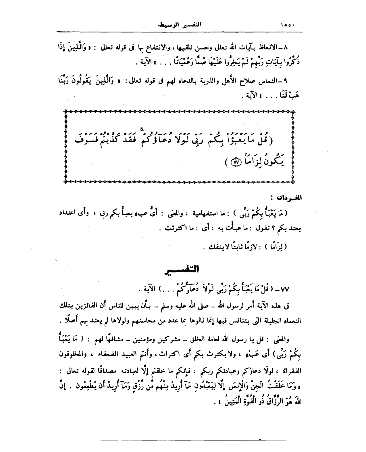 77 - {قُلْ مَا يَعْبَأُ بِكُمْ رَبِّي لَوْلَا دُعَاؤُكُمْ ... } الآية.
