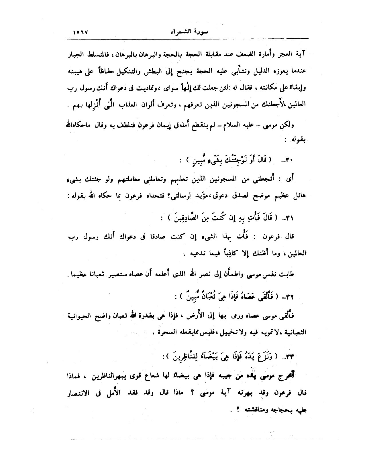 32 - {فَأَلْقَى عَصَاهُ فَإِذَا هِيَ ثُعْبَانٌ مُبِينٌ}: