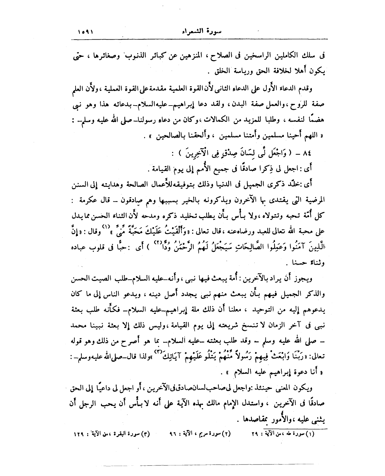 وقدم الدعاءَ الأول على الدعاءِ الثاني لأن القوة العلمية مقدمة على القوة العملية، ولأن العلم صفة للروح، والعمل صفة البدن، ولقد دعا إبراهيم - عليه السلام - بدعائه هذا وهو نبي هضمًا لنفسه، وطلبا للمزيد من الكمالات، وكان من دعاء رسولنا - صلى الله عليه وسلم: "اللهم أحينا مسلمين وأمتنا مسلمين، وألحقنا بالصالحين".