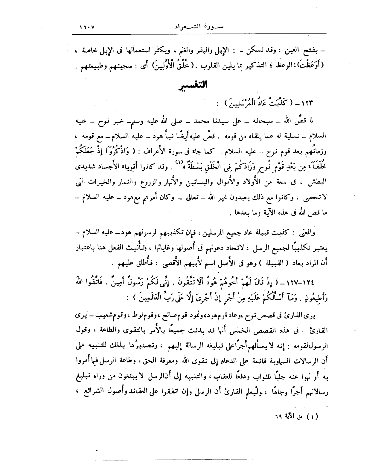 123 - {كَذَّبَتْ عَادٌ الْمُرْسَلِينَ}: