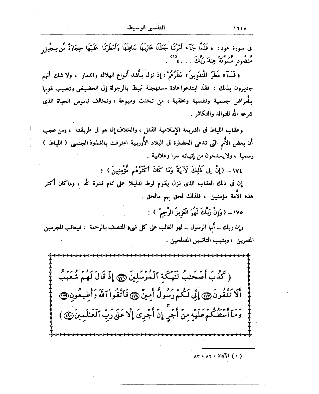 {فَسَآءَ مَطَرُ الْمُنْذَرِينَ} مَطَرُهُمْ، إذ نزل بأَشد أنواع الهلاك والدمار، ولا شك أنهم جديرون بذلك، فقد ابتدعوا عادة مستهجنة تهبط بالرجولة إلى الحضيض وتصيب ذويها بأمراض جسمية ونفسية وخلقية، من تخنث وميوعة، وتخالف ناموس الحياة الذي شرعه الله للتوالد والتكاثر.