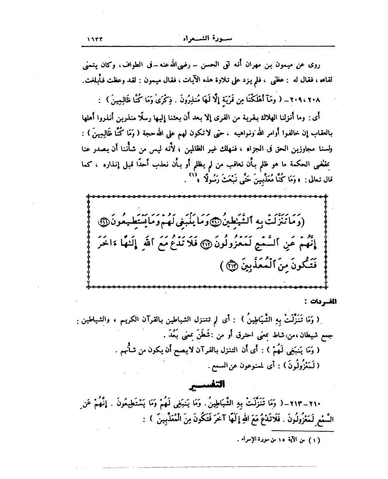 {وَمَا تَنَزَّلَتْ بِهِ الشَّيَاطِينُ (210) وَمَا يَنْبَغِي لَهُمْ وَمَا يَسْتَطِيعُونَ (211) إِنَّهُمْ عَنِ السَّمْعِ لَمَعْزُولُونَ (212) فَلَا تَدْعُ مَعَ اللَّهِ إِلَهًا آخَرَ فَتَكُونَ مِنَ الْمُعَذَّبِينَ}