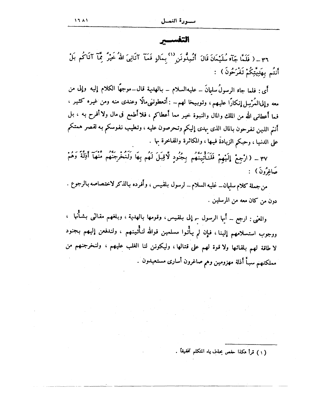 36 - {فَلَمَّا جَاءَ سُلَيْمَانَ قَالَ أَتُمِدُّونَنِ (¬1) بِمَالٍ فَمَا آتَانِيَ اللَّهُ خَيْرٌ مِمَّا آتَاكُمْ بَلْ أَنْتُمْ بِهَدِيَّتِكُمْ تَفْرَحُونَ}: