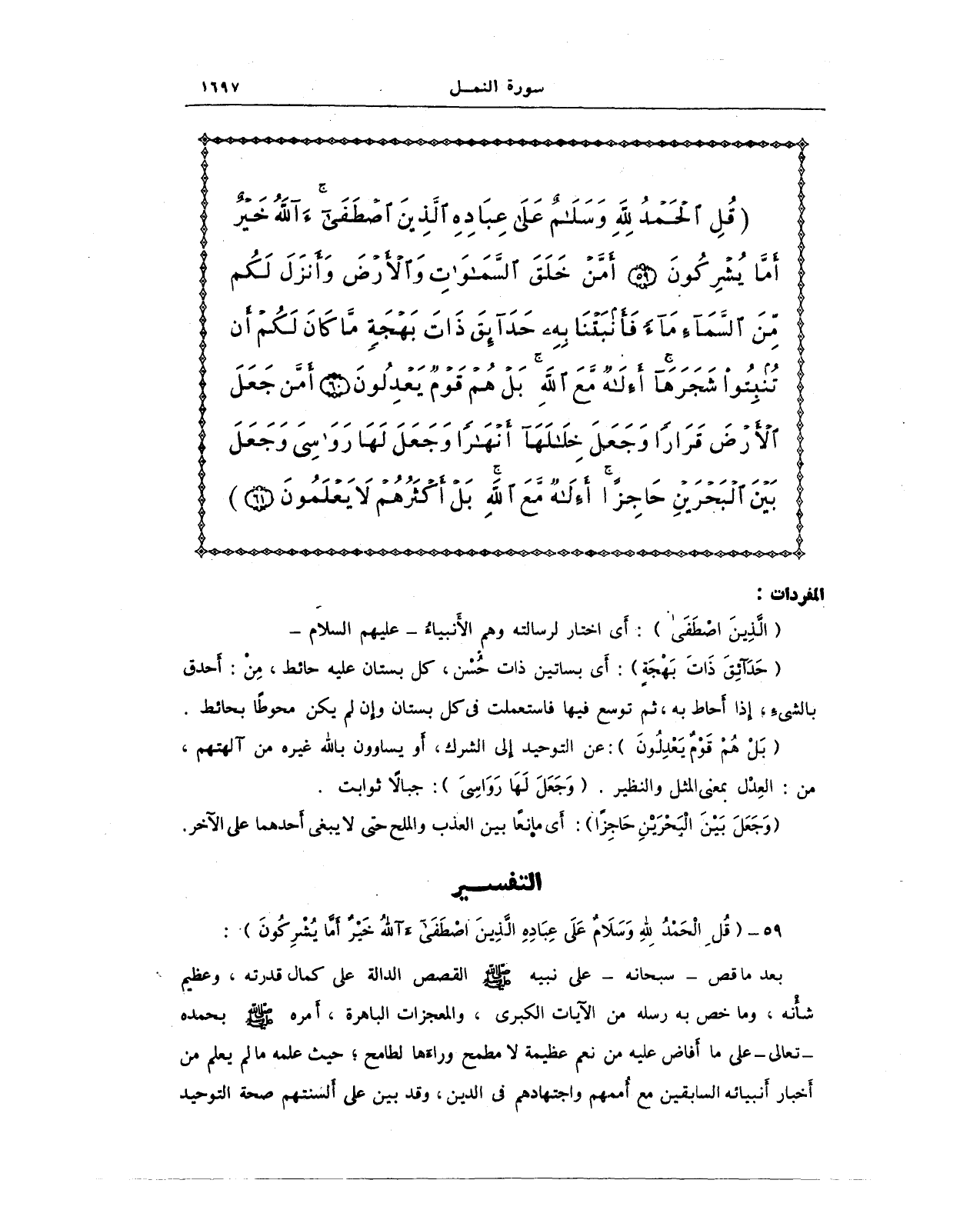 59 - {قُلِ الْحَمْدُ لِلَّهِ وَسَلَامٌ عَلَى عِبَادِهِ الَّذِينَ اصْطَفَى آللَّهُ خَيْرٌ أَمَّا يُشْرِكُونَ}: