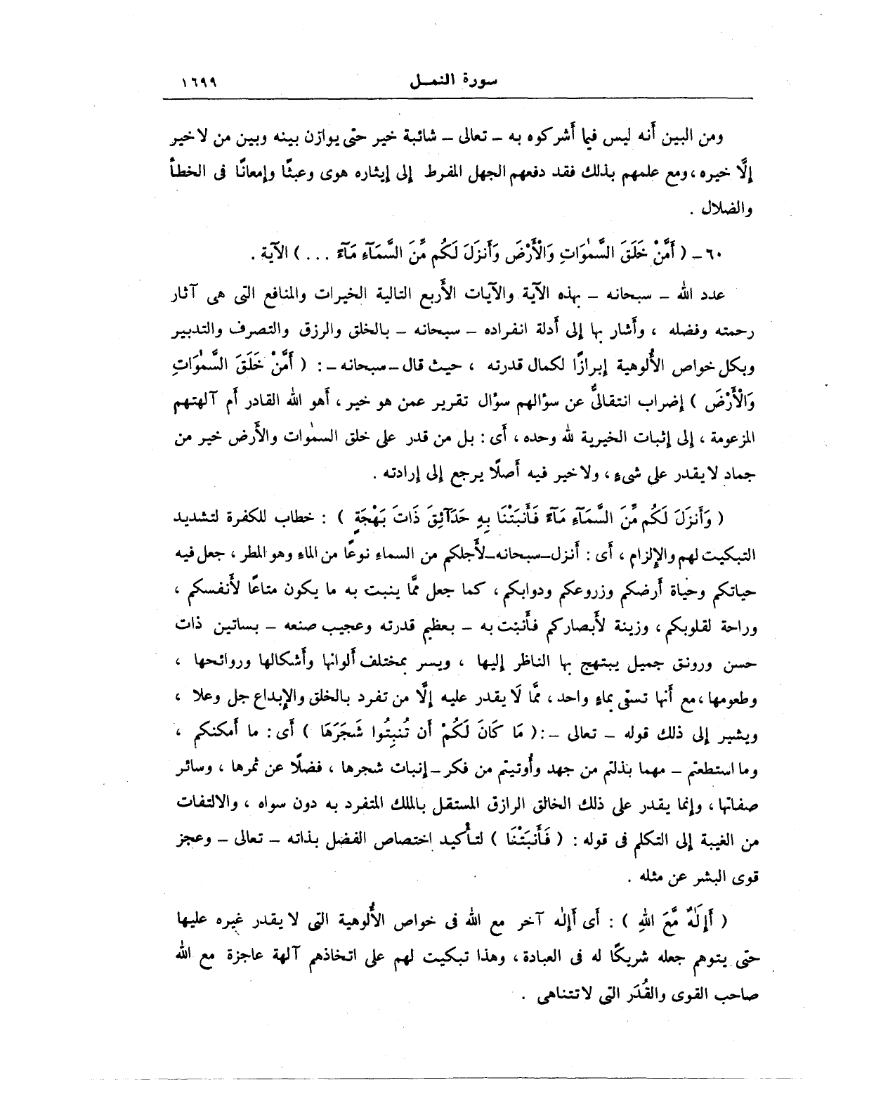 60 - {أَمَّنْ خَلَقَ السَّمَاوَاتِ وَالْأَرْضَ وَأَنْزَلَ لَكُمْ مِنَ السَّمَاءِ مَاءً ... } الآية.
