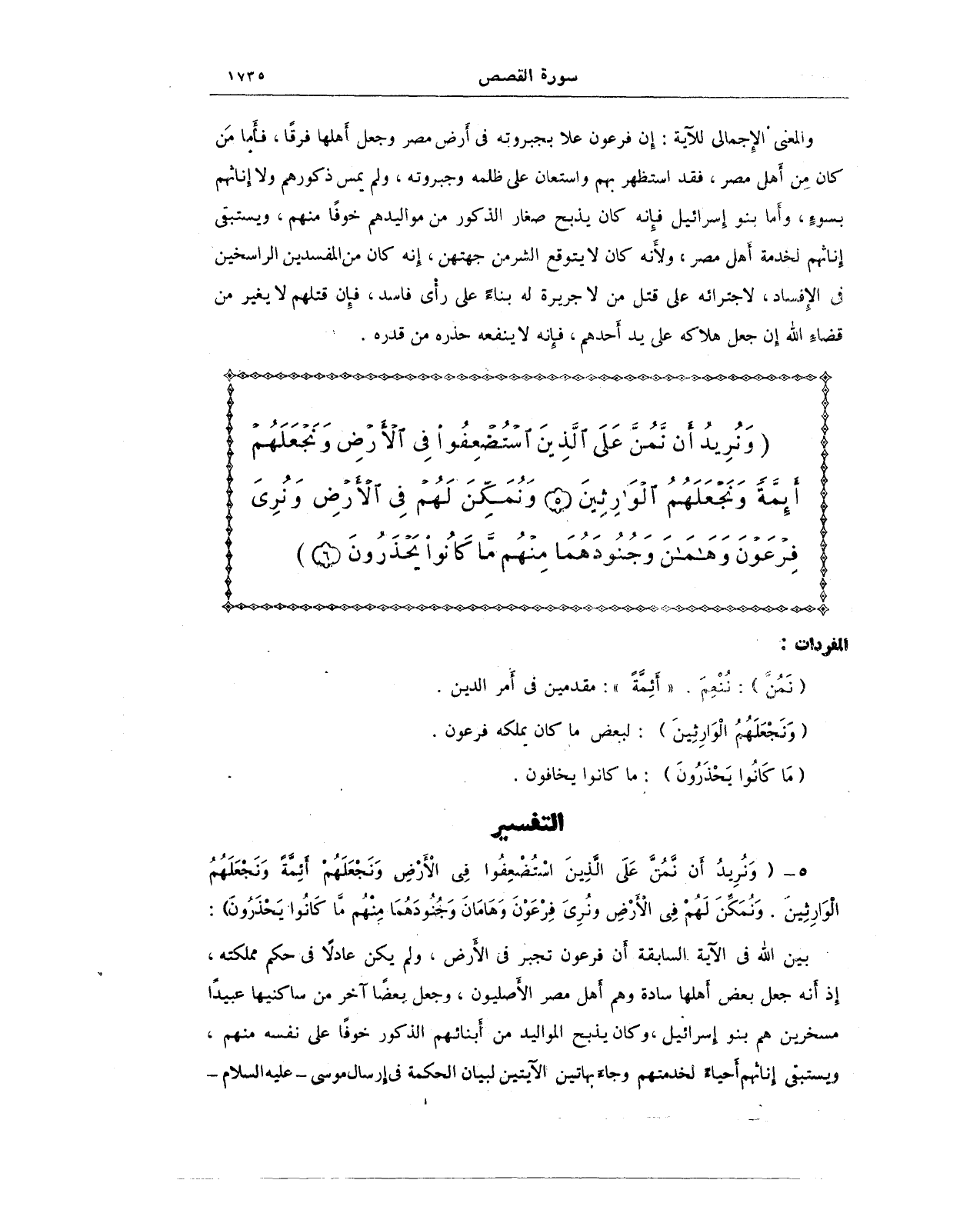 {وَنُرِيدُ أَنْ نَمُنَّ عَلَى الَّذِينَ اسْتُضْعِفُوا فِي الْأَرْضِ وَنَجْعَلَهُمْ أَئِمَّةً وَنَجْعَلَهُمُ الْوَارِثِينَ (5) وَنُمَكِّنَ لَهُمْ فِي الْأَرْضِ وَنُرِيَ فِرْعَوْنَ وَهَامَانَ وَجُنُودَهُمَا مِنْهُمْ مَا كَانُوا يَحْذَرُونَ (6)}