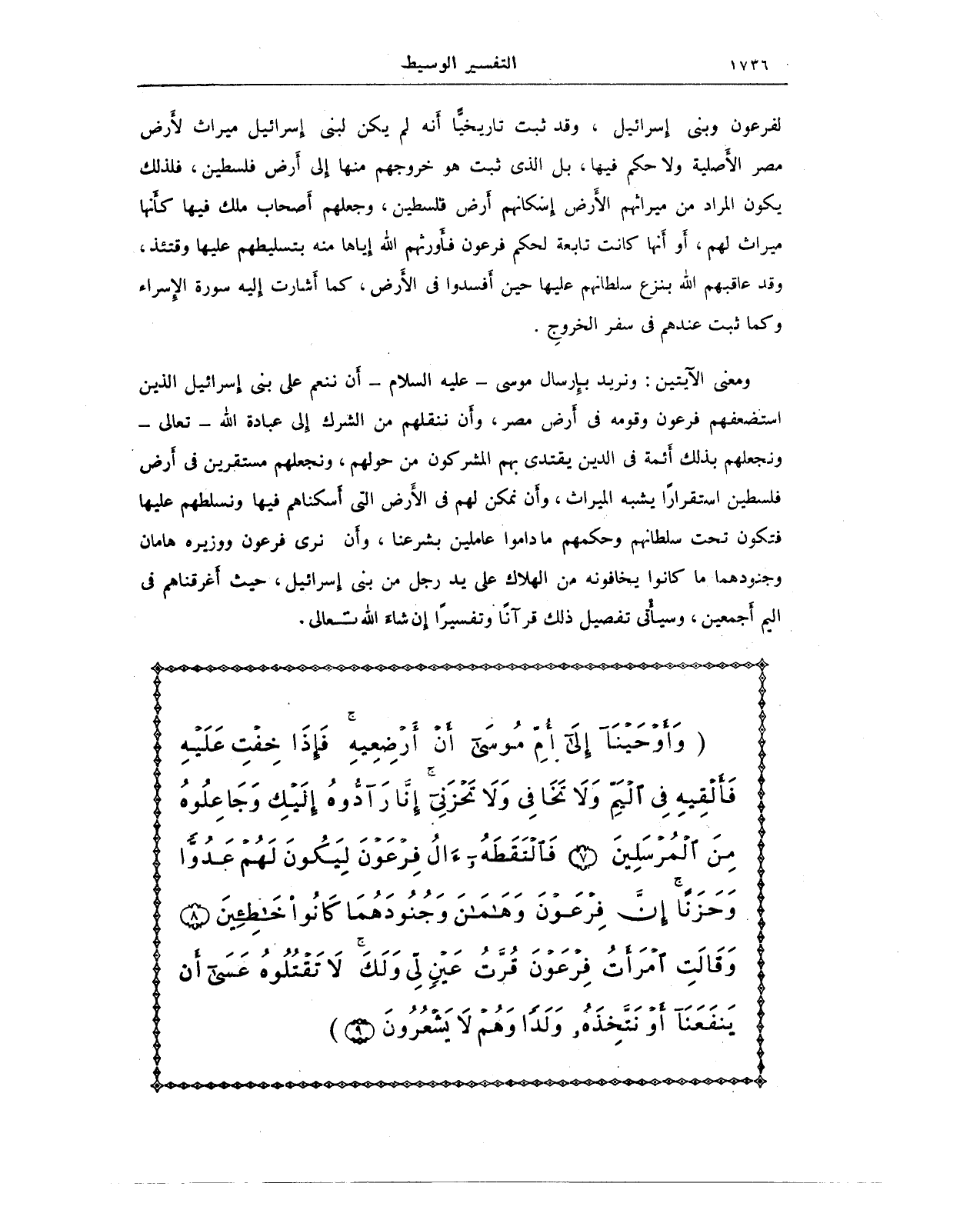 لفرعون وبنى إسرائيل، وقد ثبت تاريخيًا أنه لم يكن لبنى إسرائيل ميراث لأرض مصر الأصلية ولا حكم فيها، بل الذي ثبت هو خروجهم منها إلى أرض فلسطين، فلذلك يكون المراد من ميراثهم الأرض إسكانهم أرض فلسطين، وجعلهم أصحاب ملك فيها كأنها ميراث لهم، أو أنهما كانت متابعة لحكم فرعون فأورثهم الله إياها منه بتسليطهم عليها وقتئذ، وقد عاقبهم الله بنزع سلطانهم عليها حين أفسدوا في الأرض، كما أشارت إليه سورة الإسراء وكما ثبت عندهم في سفر الخروج.