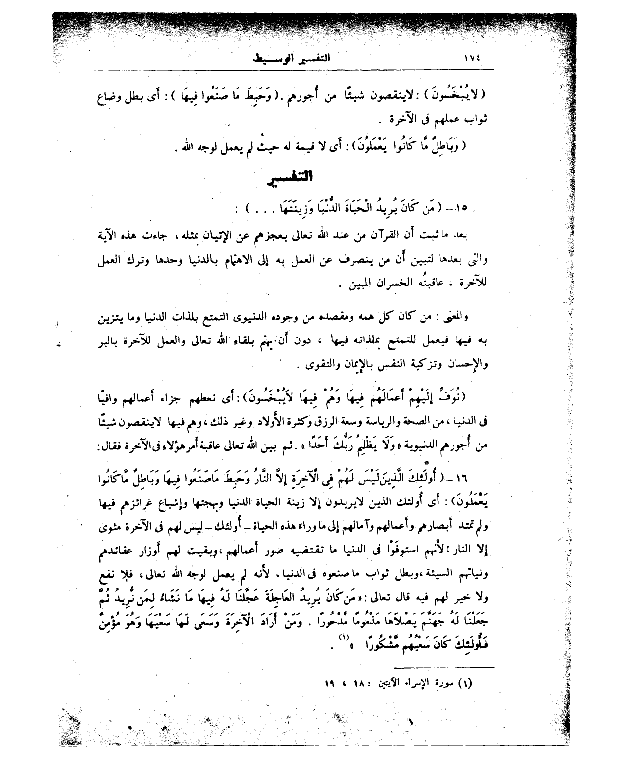 15 - {مَنْ كَانَ يُرِيدُ الْحَيَاةَ الدُّنْيَا وَزِينَتَهَا .... }: