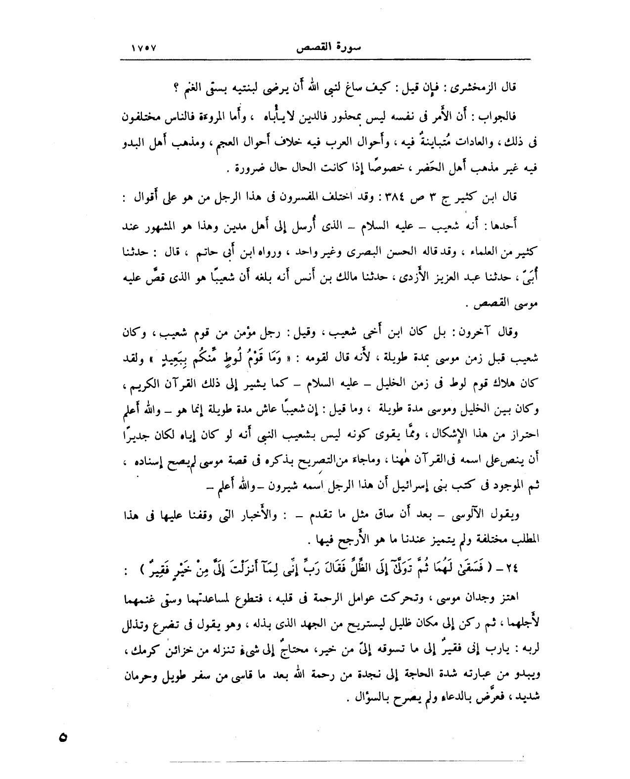 قال الزمخشرى: فإن قيل: كيف ساغ لنبى الله أن يرضى لبنتيه بسقى الغنم؟