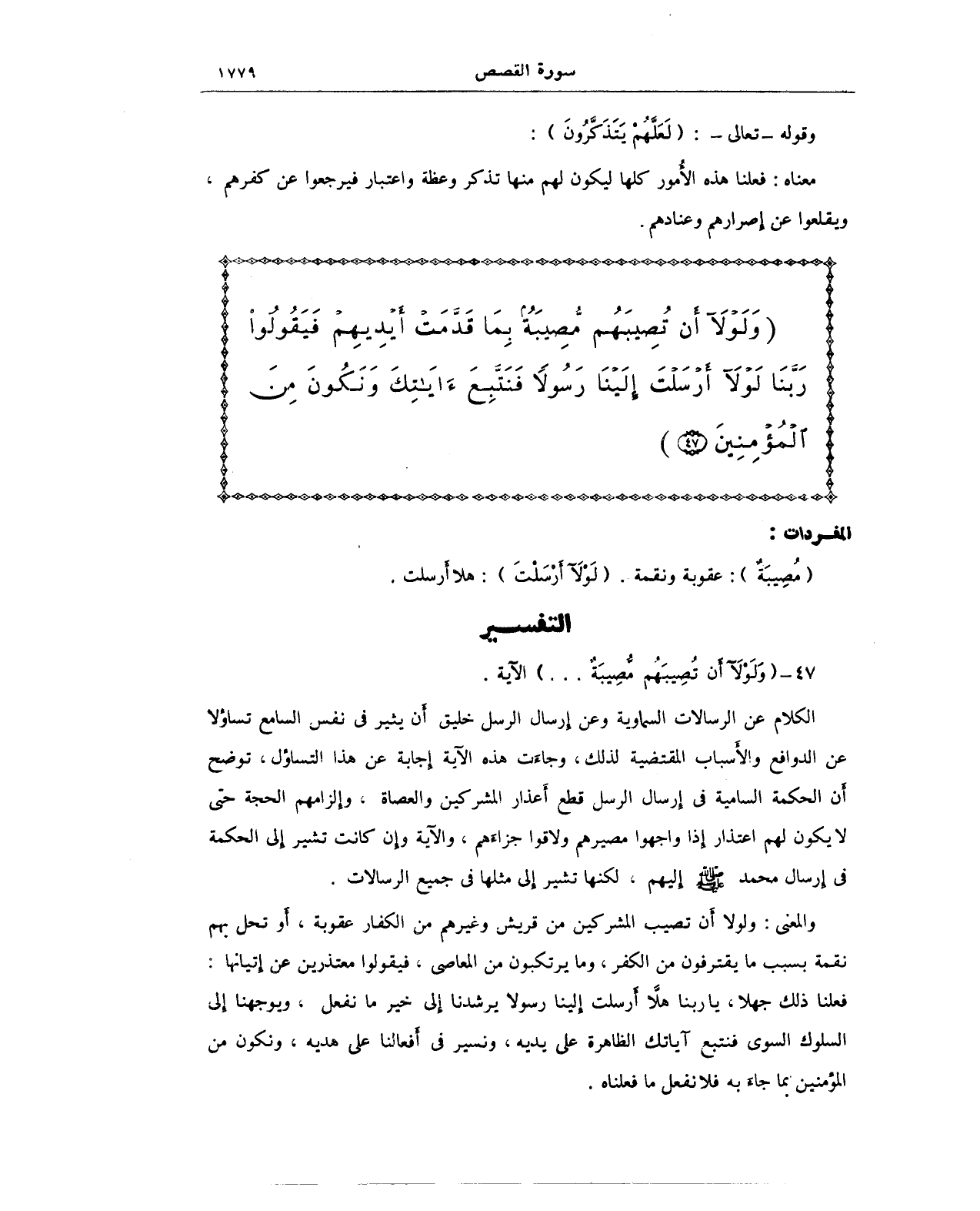 47 - {وَلَوْلَا أَنْ تُصِيبَهُمْ مُصِيبَةٌ ... } الآية.
