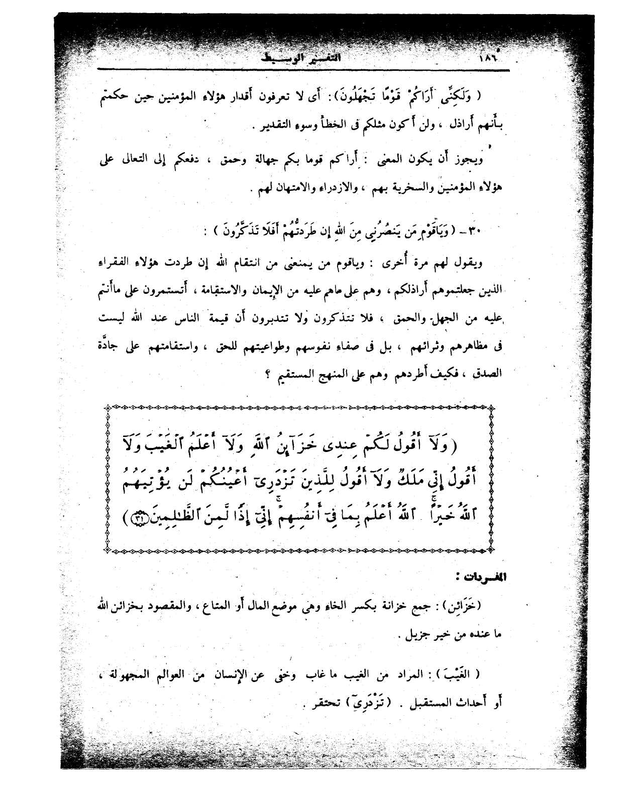 {وَلَكِنِّي أَرَاكُمْ قَوْمًا تَجْهَلُونَ}: أي لا تعرفون أقدار هؤلاء المؤمنين حين حكمتم بأنهم أراذل، ولن أكون مثلكم في الخطأ وسوء التقدير.