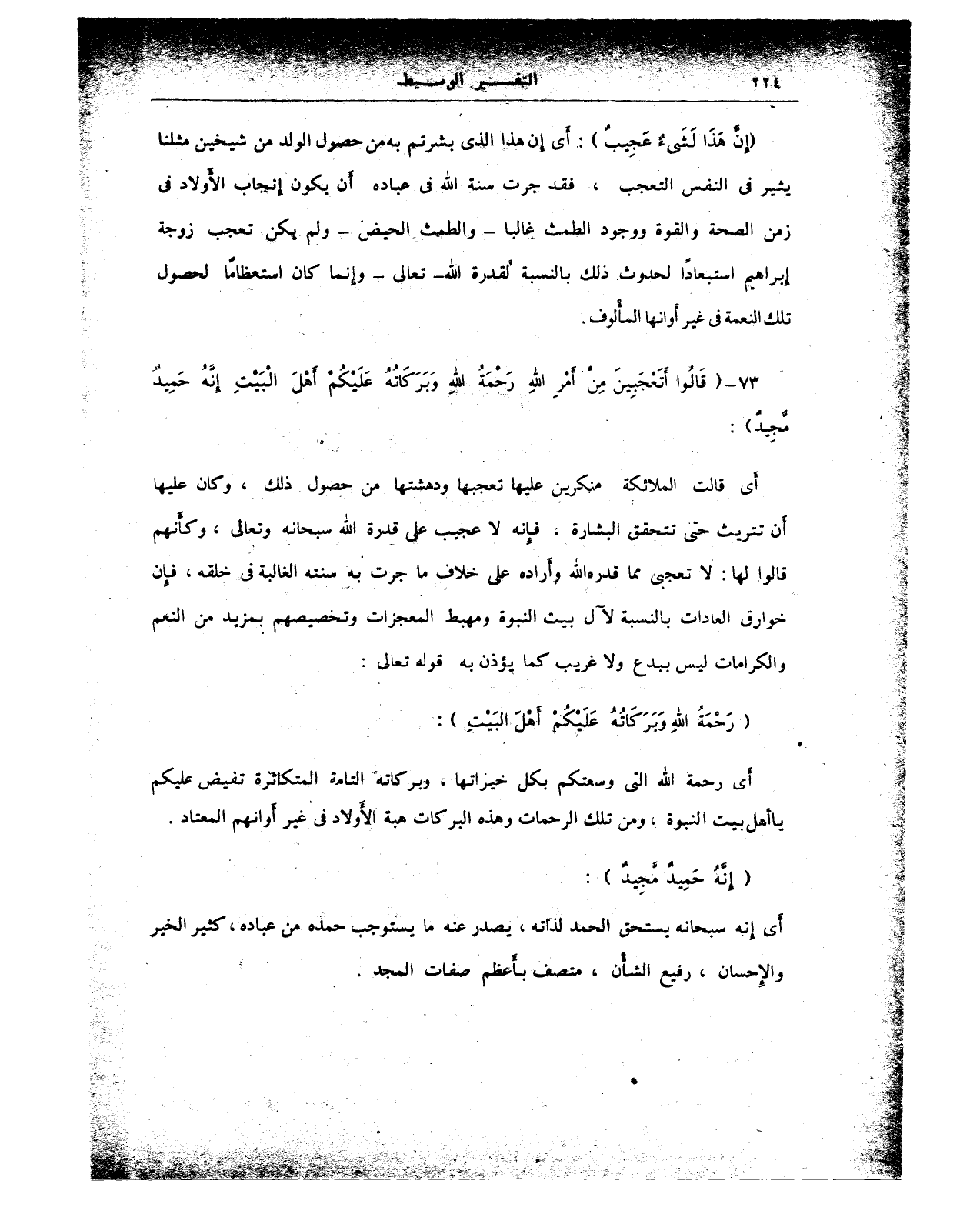73 - {قَالُوا أَتَعْجَبِينَ مِنْ أَمْرِ اللَّهِ رَحْمَتُ اللَّهِ وَبَرَكَاتُهُ عَلَيْكُمْ أَهْلَ الْبَيْتِ إِنَّهُ حَمِيدٌ مَجِيدٌ}: