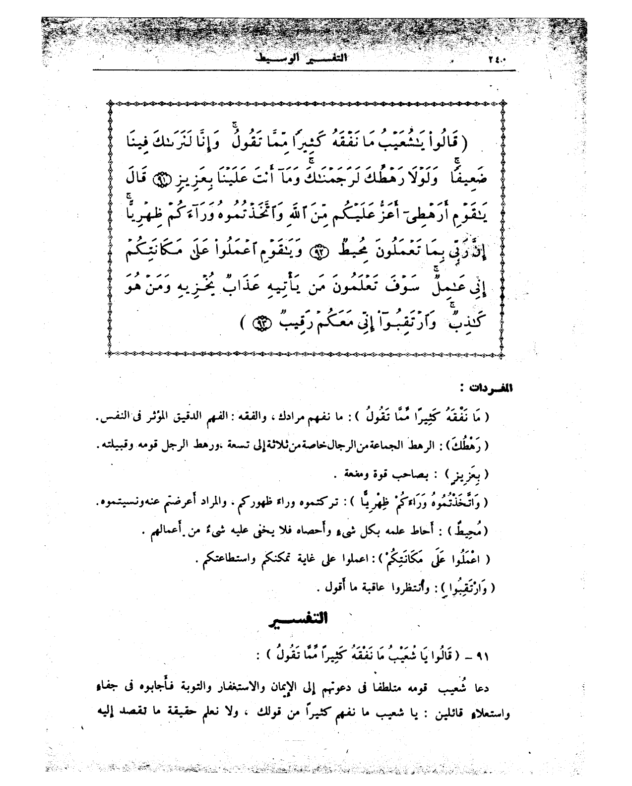 91 - {قَالُوا يَا شُعَيْبُ مَا نَفْقَهُ كَثِيرًا مِمَّا تَقُولُ}: