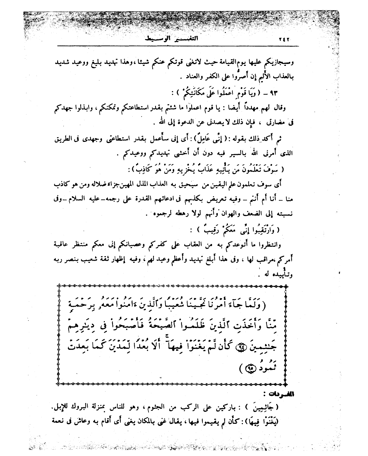 93 - {وَيَا قَوْمِ اعْمَلُوا عَلَى مَكَانَتِكُمْ}:
