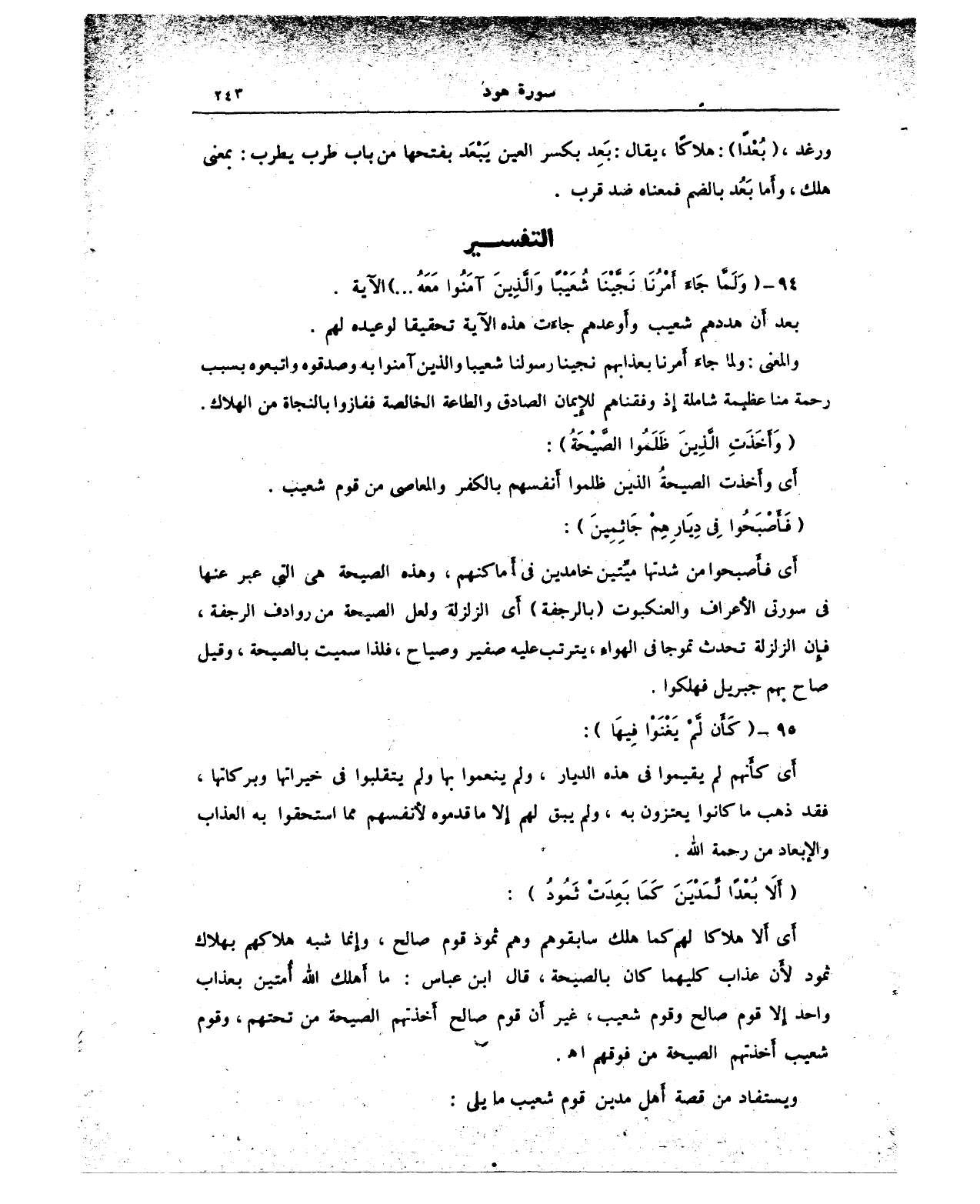 94 - {وَلَمَّا جَاءَ أَمْرُنَا نَجَّيْنَا شُعَيْبًا وَالَّذِينَ آمَنُوا مَعَهُ ... } الآية.